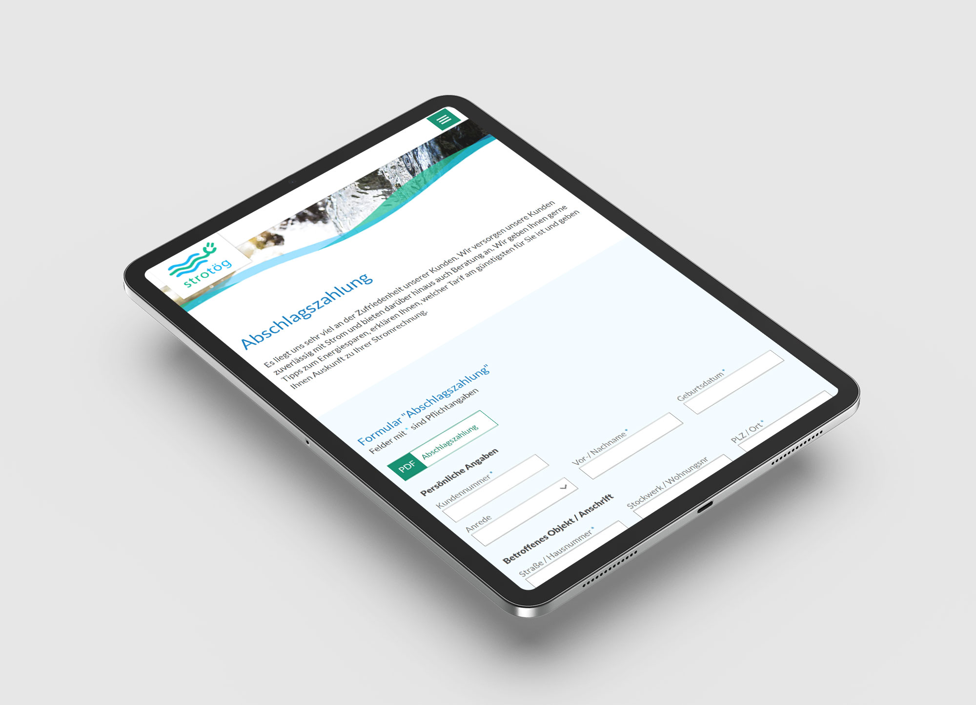 Für die Strotög GmbH entstand ein Website-Relaunch, der das Unternehmen als regionalen Stromanbieter modern präsentiert. Das Design integriert dynamische Elemente, die das Wasserkraftwerk und die Energiegewinnung visuell widerspiegeln, und sorgt für eine übersichtliche Struktur. Zudem wurden spezielle Funktionen wie ein dynamischer Tarifrechner und diverse Online-Formulare eingebunden und die Website barrierefrei umgesetzt. Die Seite wurde mit dem CRM-System WebEdition umgesetzt, sodass der Kunde Inhalte eigenständig pflegen kann.